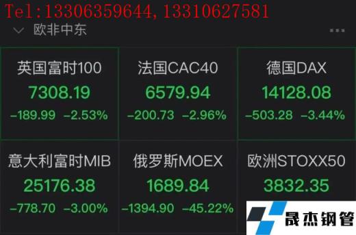 英國富時(shí)100指數(shù)、法國CAC40指數(shù)、德國DAX指數(shù)、意大利MIB指數(shù)均已暴跌。截至目前,分別跌2.53%、2.96%、3.44%、3.00%,俄羅斯MOEX下跌45.22%。