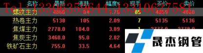 今日螺紋主力期貨漲84,收報(bào)4860,漲幅1.76%;熱卷主力漲105,收報(bào)5138,漲幅2.09%;焦煤主力漲104,收報(bào)2778,漲幅3.89%;焦炭主力漲98,收報(bào)3460,漲幅2.82%;鐵礦石主力漲33.5,收報(bào)755,漲幅4.64%。