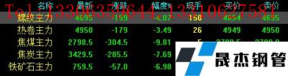 今日螺紋主力期貨跌199,收報(bào)4695,跌幅4.07%;熱卷主力跌179,收報(bào)4950,跌幅3.49%;焦煤主力跌304.5,收報(bào)2798.5,跌幅9.81%;焦炭主力跌285.5,收報(bào)3429.5,跌幅7.69%;鐵礦石主力跌57,收報(bào)759.5,跌幅6.98%。