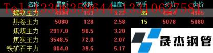 今日螺紋主力期貨漲153,收?qǐng)?bào)4904,漲幅3.22%;熱卷主力漲128,收?qǐng)?bào)5080,漲幅2.58%;焦煤主力漲90.5,收?qǐng)?bào)2917,漲幅3.2%;焦炭主力漲72,收?qǐng)?bào)3548.5,漲幅2.07%;鐵礦石主力漲39.5,收?qǐng)?bào)804,漲幅5.17%。