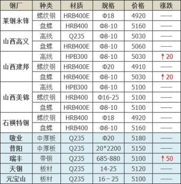 上調(diào)2家,占比20%,調(diào)價幅度20-50元/噸;